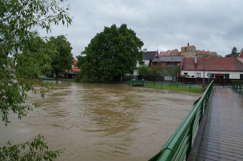Povodeň 2013 - lávka Dobrovského, foto Radomil Šmíd
